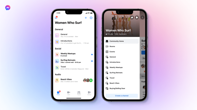 Similar to a Facebook group, these chats are intended to span beyond your real-life friend group — if you’re a woman who loves to catch some waves, you might join “Women Who Surf,” as shown in a mock-up image. Because you’ll likely interact with strangers, the product will roll out with moderation tools that allow admins to remove messages and block, mute or suspend group members. An “admin assist” feature will allow admins to set custom criteria to automate moderation. For example, if you’re operating a G-rated chat and don’t want people to drop the f-bomb, you can automatically ban users who send messages with that word.