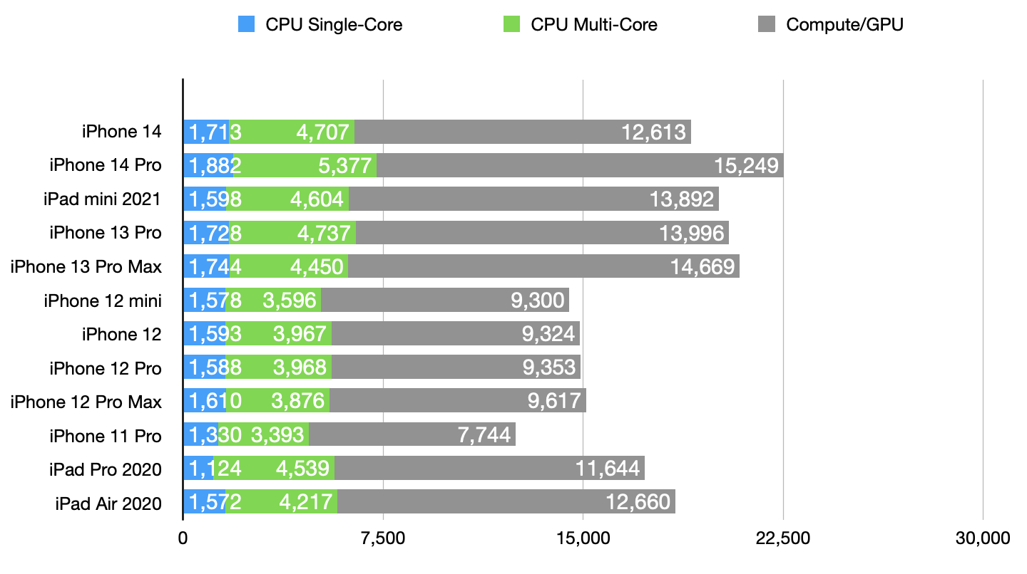 Apple says that all of the iPhone 14 models have a new internal structure that allows for better thermals and heat dissipation. It’s next to impossible to determine if there is any real benefit here in my testing, though I’m sure that a teardown will display whatever architectural changes Apple has made. Whatever has changed, it is significant, because the iPhone 14’s back glass can now be replaced without having to disassemble the phone, something that was not possible before.