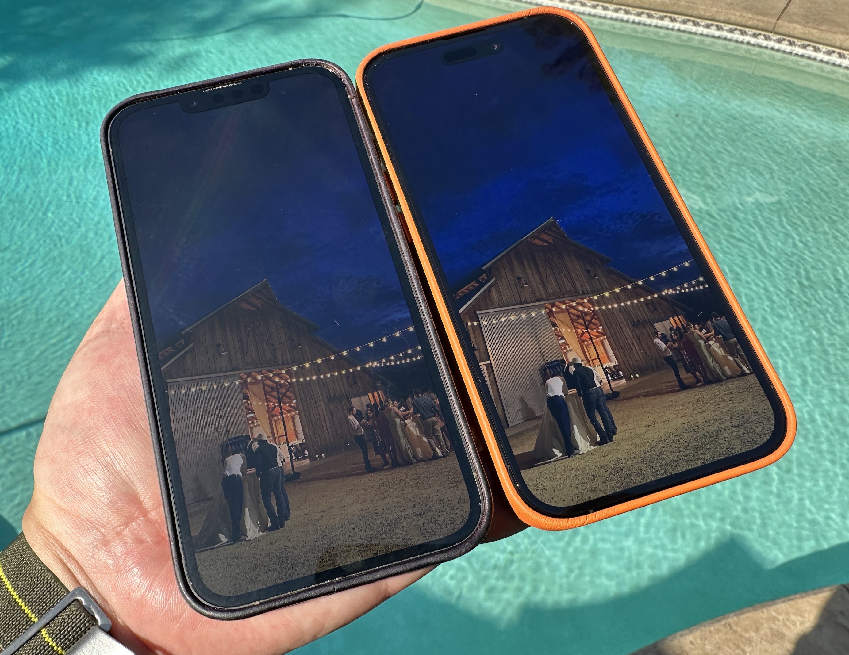 To give you at least some comparison, I shot an exposure locked frame from an iPhone 14 Pro Max of the same image displayed on both the iPhone 13 Pro (left) and iPhone 14 Pro (right). I believe the resulting shot gives a fair approximation of how much brighter the iPhone 14 Pro’s screen can look in direct sunlight.