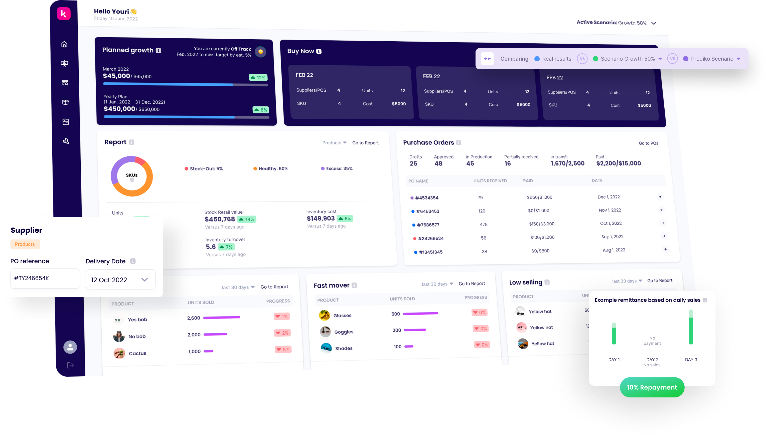 Prediko has built an online dashboard that lets you review your inventory position as well as plan and order more products. Customers connect Prediko with their Shopify store directly — the startup is building integrations with other e-commerce platforms. After that, they can generate inventory reports to see fast-moving products, slow-selling items and the current retail value of the inventory.