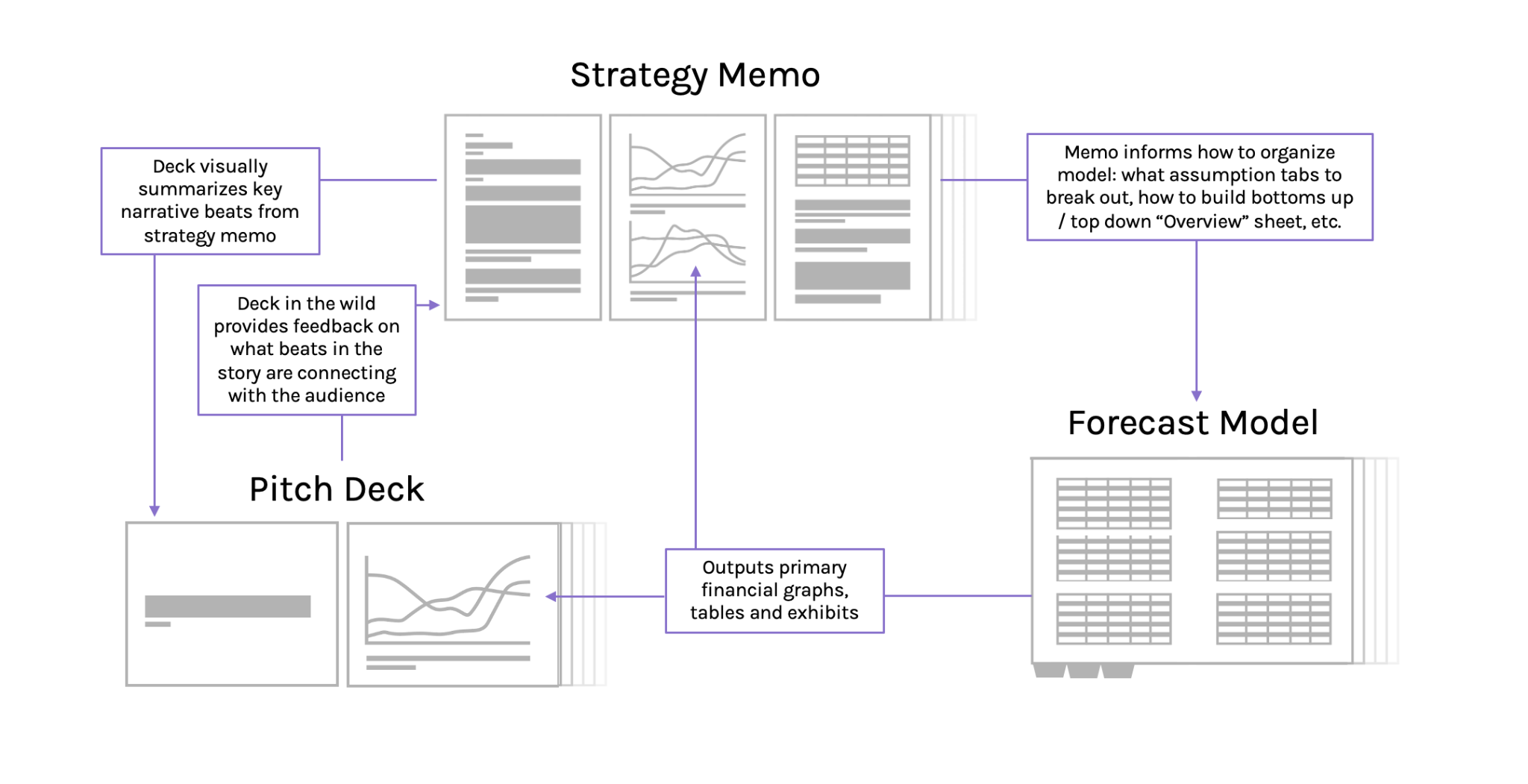 I have also heard it referred to as a “narrative deck” — basically a detailed, written version of your pitch. I also do not think this fully captures a great strategy memo, as it is more than just the deck. I see the deck almost as a derivative of the strategy memo.