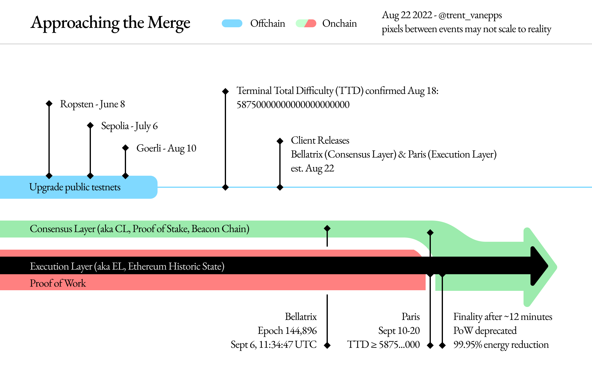 On September 6, 2022, the Ethereum community released the Bellatrix upgrade in order to start “The Merge” process. With this first upgrade, the community decided to swap the proof-of-work chain with this proof-of-stake chain upon hitting a certain Total Terminal Difficulty (TTD) value on the original Ethereum blockchain.