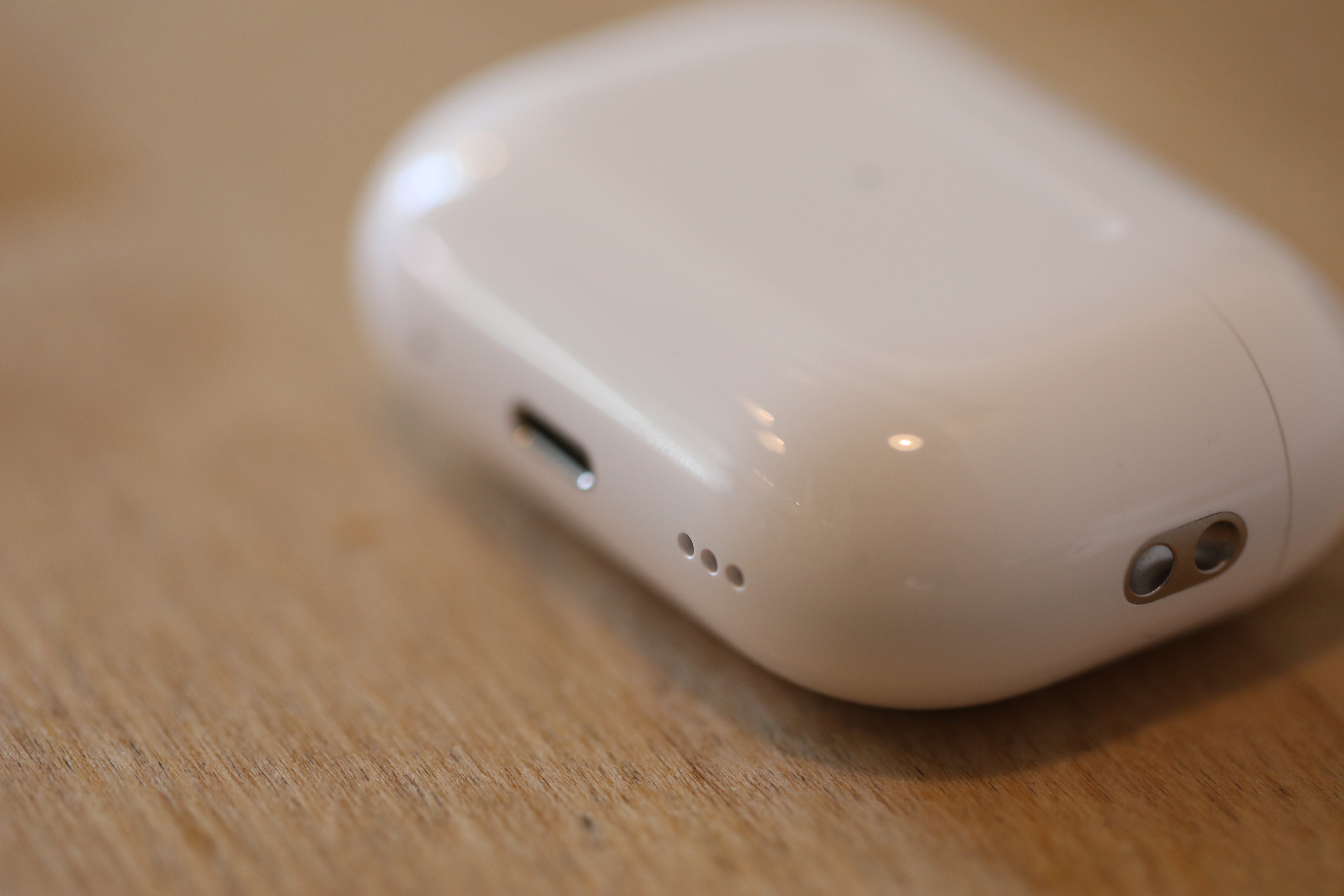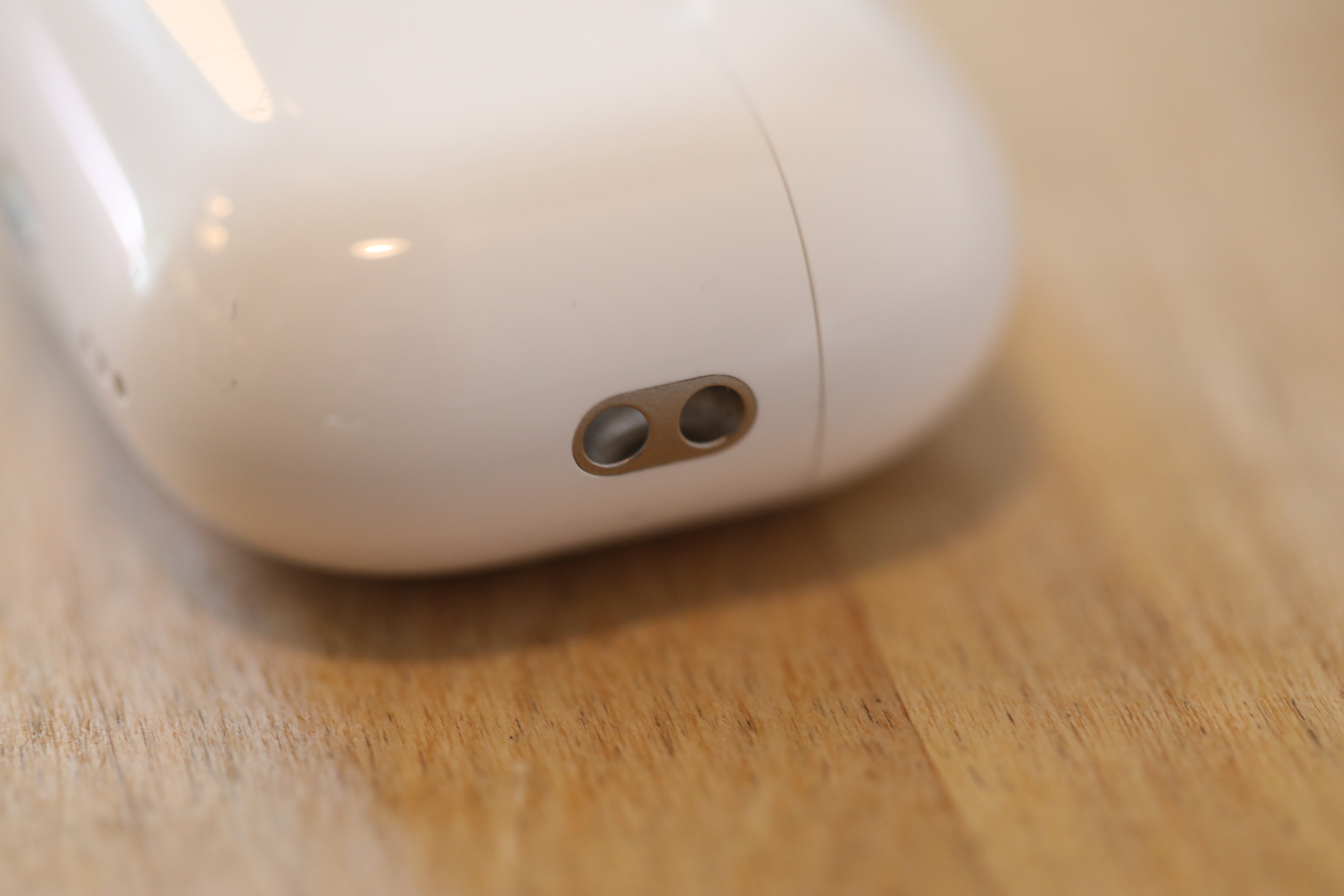 The most welcome change of all just might be the speakers on the charging case. The three small holes to the side of the Lightning port bring some cool functionality. For starters, you get a single note chime when charging starts and another when it hits 100%. The biggest trick, however, is the ability to play a sound when attempting to locate a lost case. The buds were already able to do so, because they — obviously — have their own built-in speakers.