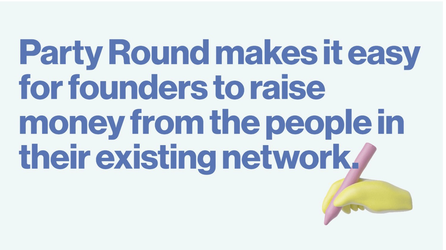 Party Round gets a lot of things right in its deck. I like the design and I particularly like the scarcity of words. Hell, the entire deck contains just 148 words. That’s … nothing. The company raised $7 million with 148 words. That’s $47,000 per word. These pitch deck teardowns are usually 2,200 words long, and I haven’t checked my pay stub in a hot minute, but I’m pretty sure TechCrunch isn’t paying me $100 million per article. Then again, I’m not widely known for my brevity.