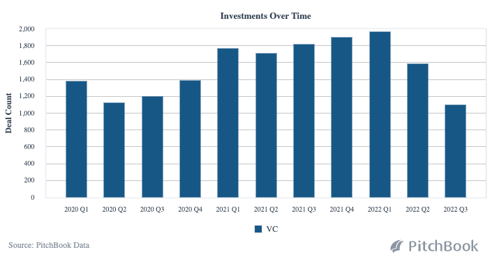 The next question that we need to answer is how the above declines square up with aggregate Q3 venture capital trends. We’ll wait to get the final numbers to make that determination with confidence, but it wouldn’t shock us if we are seeing this market slow in excess of venture capital totals more generally.