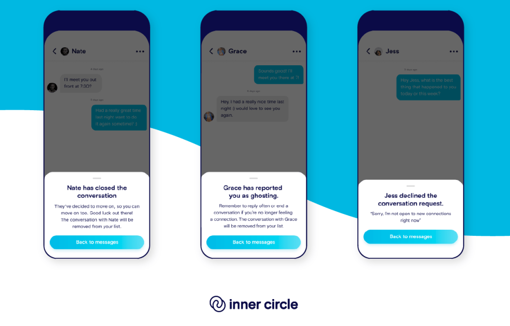 Inner Circle dubbed this new group of features designed to provide more closure to online daters “The Date Conscious Suite.” The new toolset includes things like anti-ghosting reminders, end conversation options, closure messages, pinned conversations, and decision prompts.