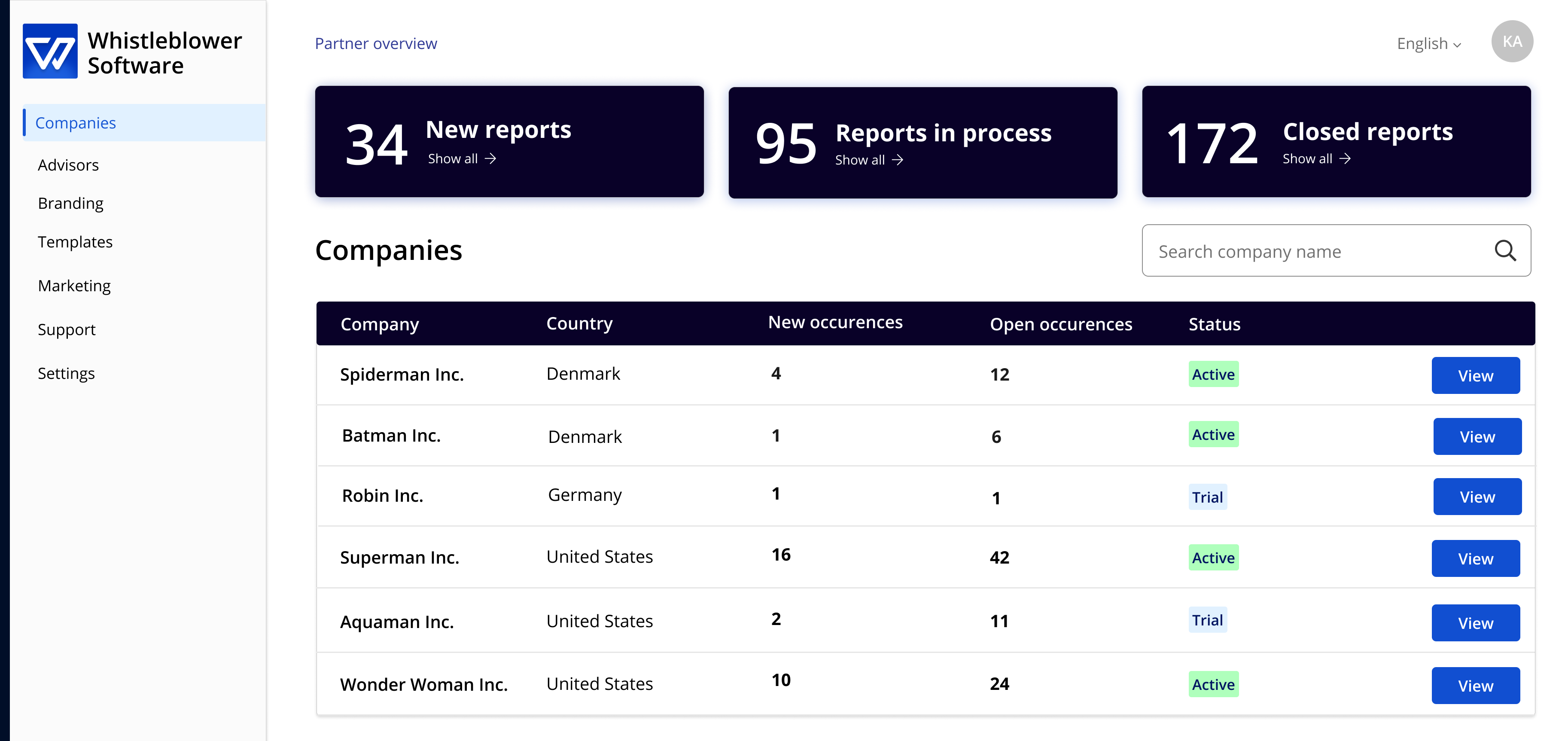 Lilholm says that they’re setting out to differentiate through a number of avenues, perhaps chief among them being how it’s distributing its software. While any company can sign up for its platform and pay a monthly subscription similar to any other SaaS, Whistleblower Software also offers a partner program that allows consultancies such as PwC, DLA Piper, Baker McKenzie and BDO to “resell” the whistleblower technology directly to their own customers. Not only does this help Whistleblower Software scale, but it hugely simplifies things for the consultancies, as they are able to manage multiple whistleblowing channels for different companies through a single interface.