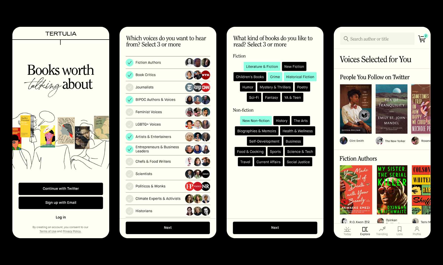 Tertulia uses artificial intelligence and machine learning to scan conversations on Twitter, as well as articles about books, to see what people are talking about. Like other social-facing startups, Tertulia is first building with Twitter, since the platform’s API is more permissive. In the future, Cwilich hopes to advance Tertulia’s technology enough to scan communities on other social networks like TikTok, too.
