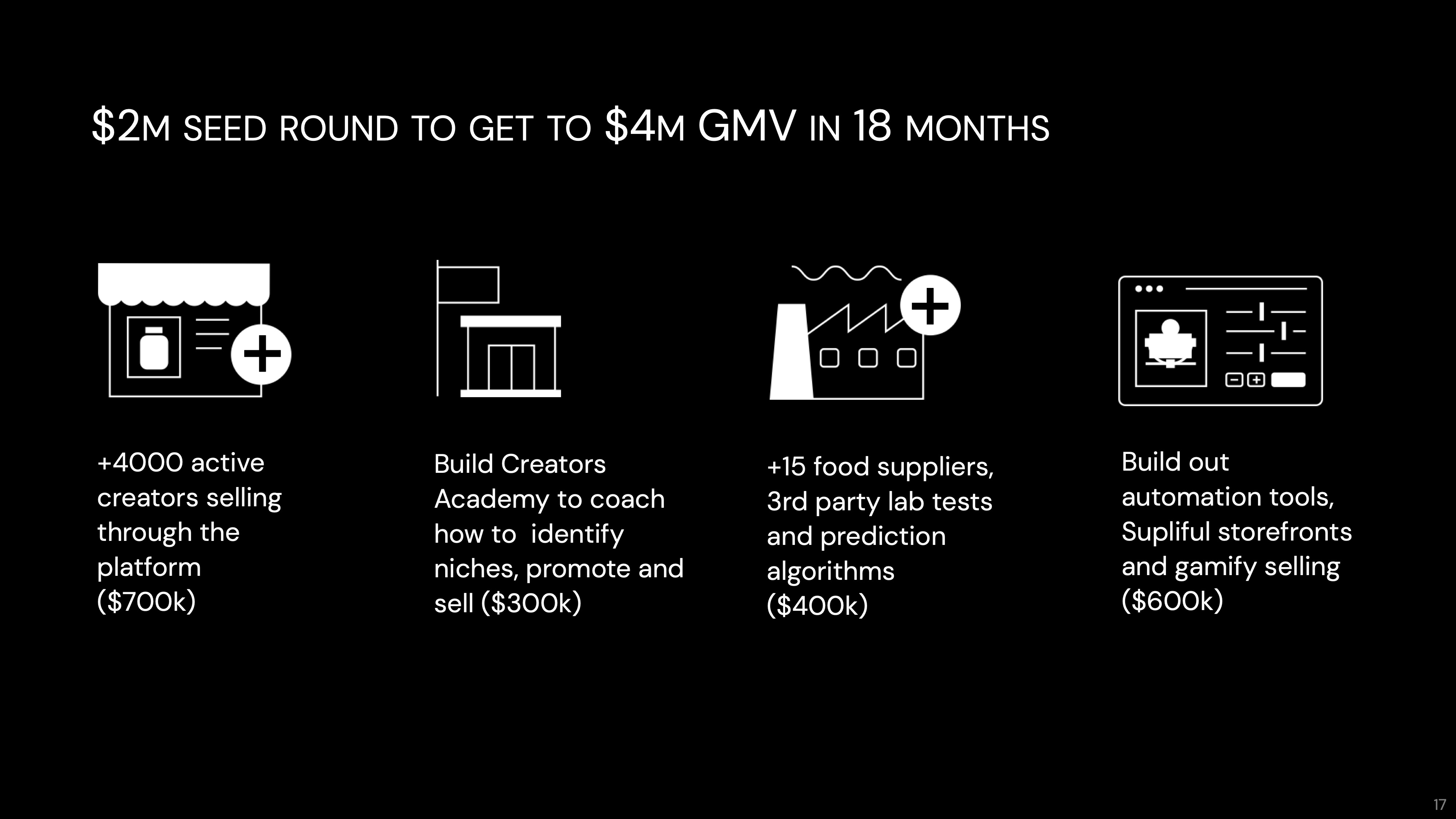 Supliful has a whole slide that shows that it has a deep understanding of what it needs to do to get where it wants to go: