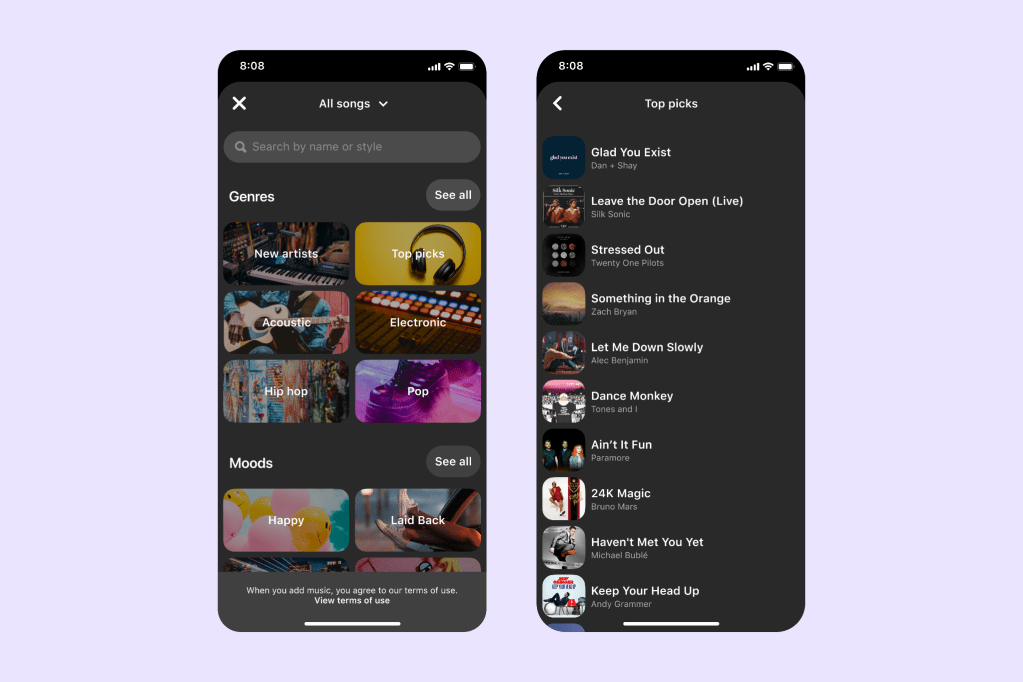 To make it easier to browse and access this larger music catalog, the Pinterest mobile app will also introduce a new music experience on iOS and Android. Here, creators will be able to search for music by artist, track name or keyword in order to find the right song to accompany their Idea Pin.