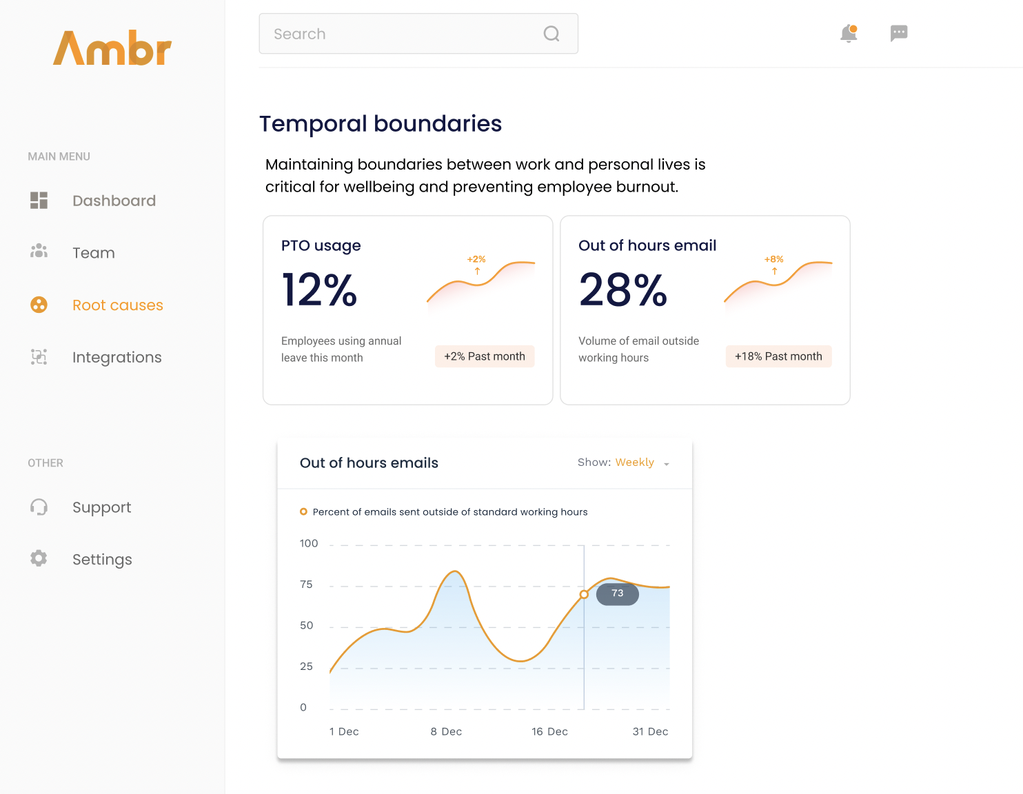 But spotting risk factors is just one element of this. Ambr is also working on “nudges” that serve workers gentle reminders inside their core workplace tools, perhaps suggesting ways they could cut down on out-of-hours work.