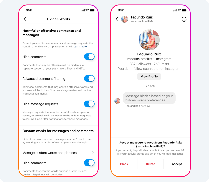 - Instagram is expanding its “Hidden Words” feature, which lets you filter out abusive DMs using keywords and emoji, to also cover replies to Stories and catch intentional misspellings made to avoid filters. It also expanded its preventative blocking tool to proactively block more accounts from the abuser and added more nudges to remind users about to post a harmful comment to be kind.