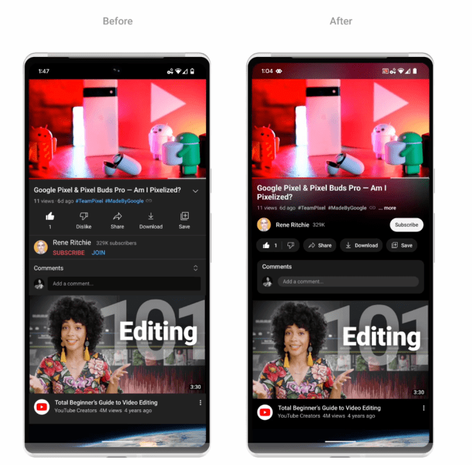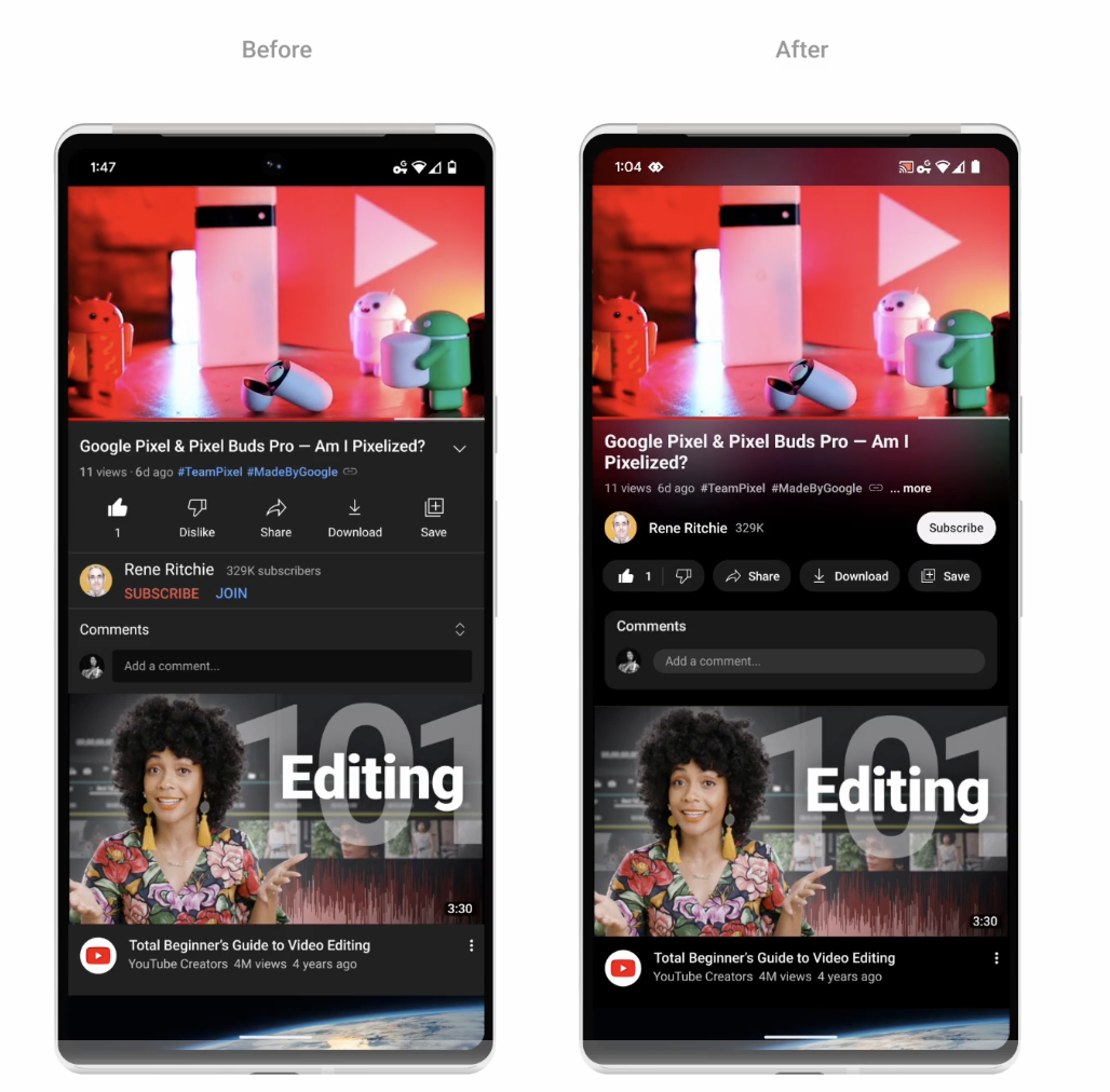 Plus, the subscribe button will now appear as a black-and-white pill-shaped button instead of the bright red “SUBSCRIBE.”