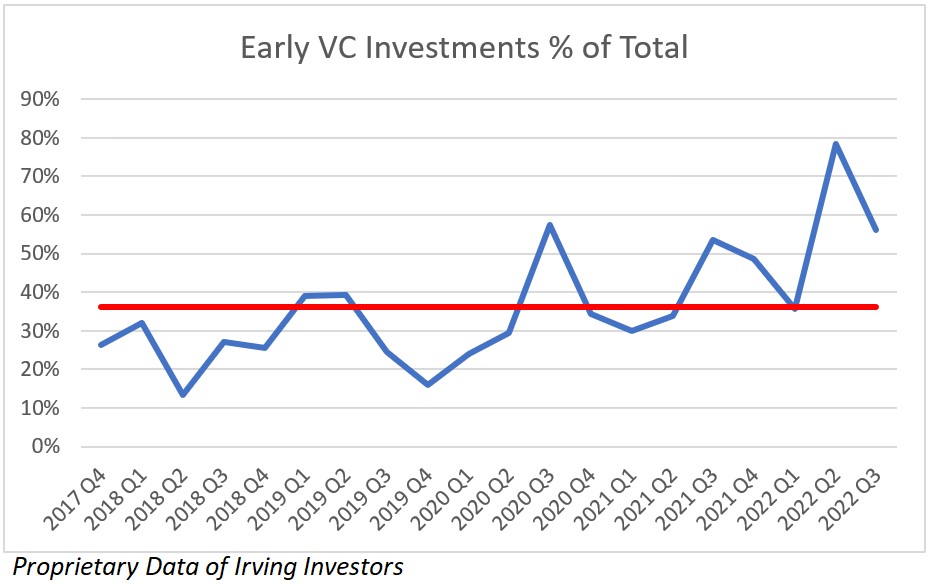 The early stages are about picking winners while the later stages are about investing in winners at good valuations. Investors can deploy in early-stage companies now without needing the valuation recalibration that they are waiting for and not finding in late-stage companies.