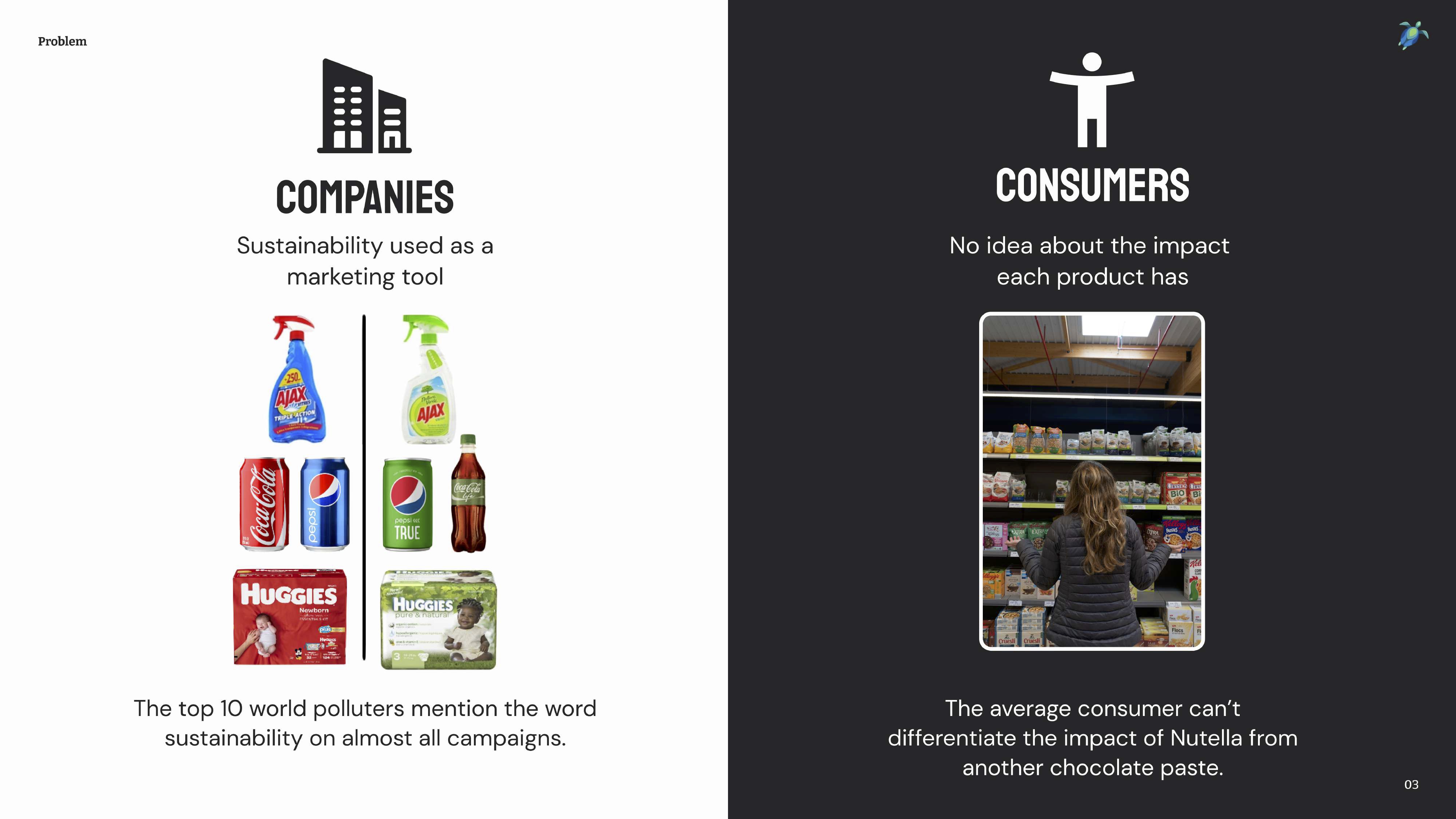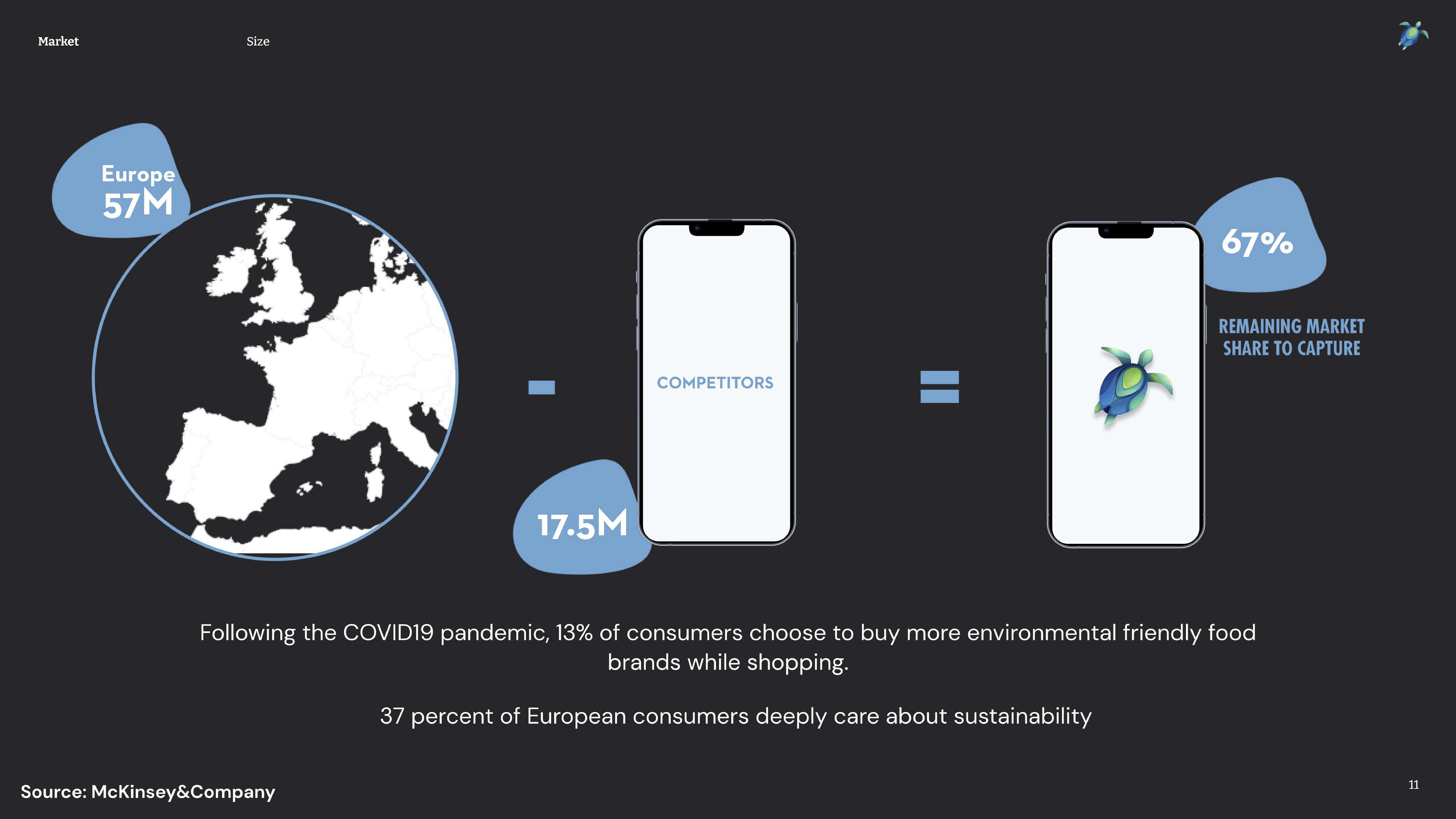 I mentioned earlier that all that matters is the market size and team, and I’ll get to that in just a moment. For now, I was really impressed at how simple the idea is, and how easy it is to imagine this in use. Scan a barcode, get information about a product and get nudged toward products that have less impact on the climate.