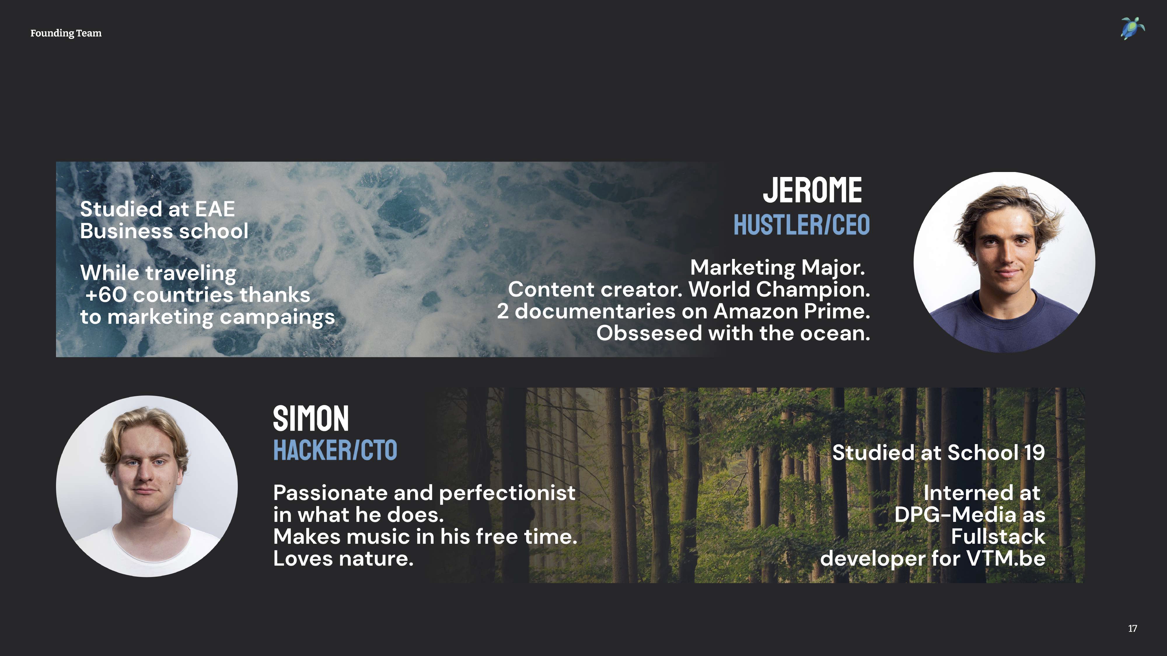 This pre-seed deck has 22 slides, but it could probably have been 10 slides or so. That said, it looks good, and although it jumps from topic to topic a little, I can see how the presentation would take shape. Cloetens notes that the slide deck has been slightly updated since the fundraise, and he mentioned it’s “not precisely as pitched; some of the design and small content changes (auch as our traction metrics) have been updated.”