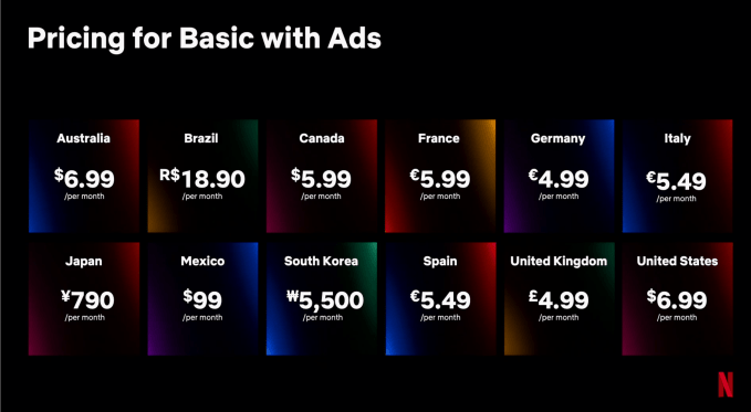 Today’s a big day for Netflix as it’s now launching its new ad-supported plan, “Basic with Ads,” to subscribers in the U.S., the U.K., France, Germany, Italy, Australia, Japan, Korea and Brazil. The launch comes two days after Netflix rolled out the cheaper tier to its debut markets, Canada and Mexico.