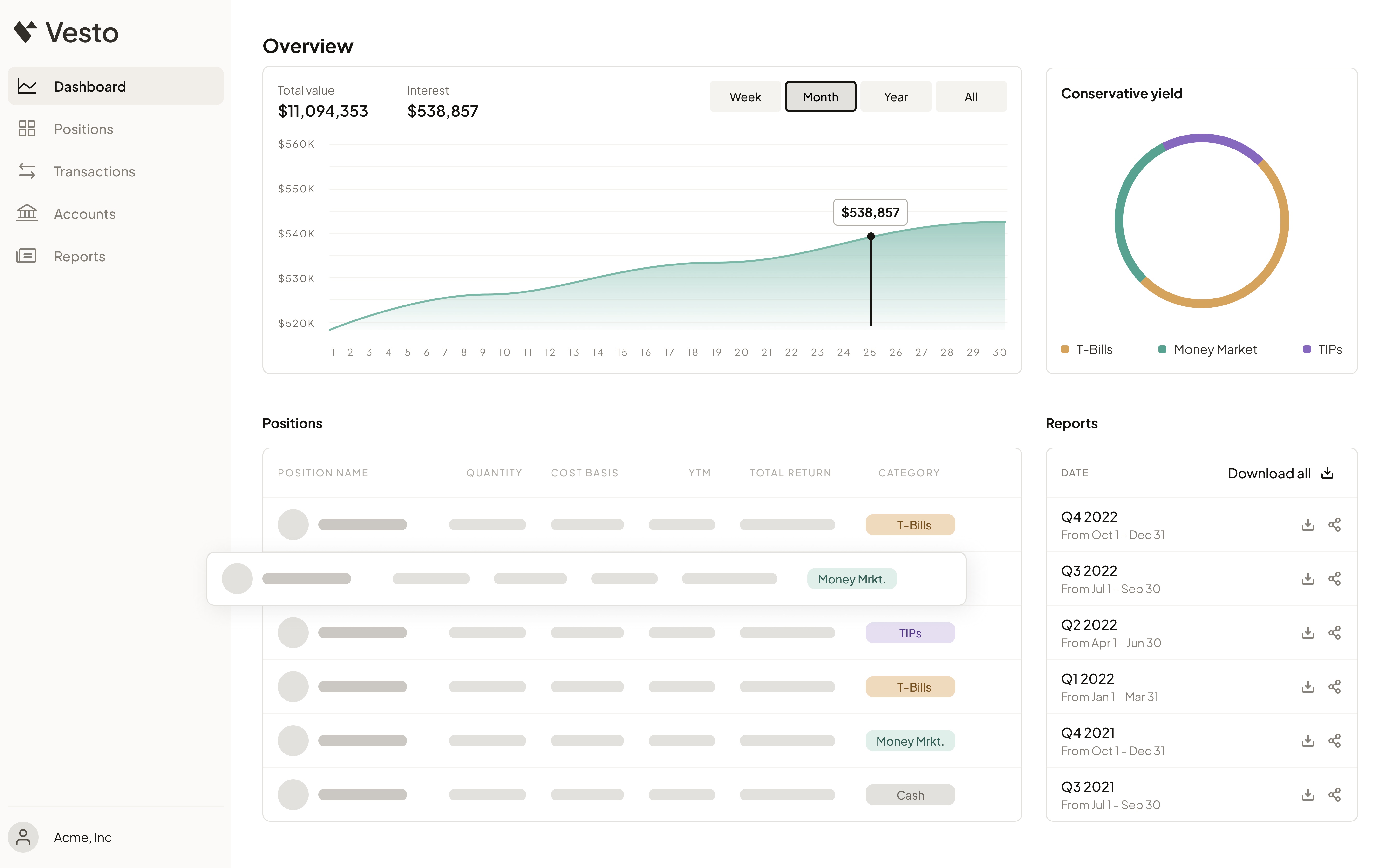“As great as big banks like First Republic or new entrants like Mercury are, founders just don’t get deep value from buying CDs or basic Treasury bills. Vesto’s mindset is focused on giving finance teams the power of a full asset manager in one software platform,” he said. “Companies like Apple and Airbnb famously manage their idle cash with ‘internal hedge funds’ and allowing every company to do the same is exciting.”
