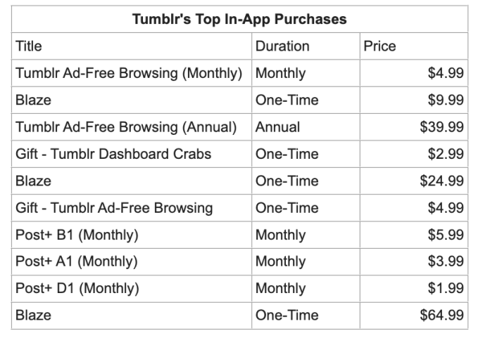 According to data from SensorTower, Tumblr’s mobile app has seen approximately $507,000 in consumer spending since April. That was the month when Tumblr announced Blaze, a feature that lets users promote their own posts. Not coincidentally, Blaze debuted on 4/20 with price points ending in $4.20.