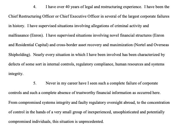 Best known for his work during the aftermath of Enron’s crumbling, here’s a sampling of what Ray had to say about his experience and what he found at FTX: