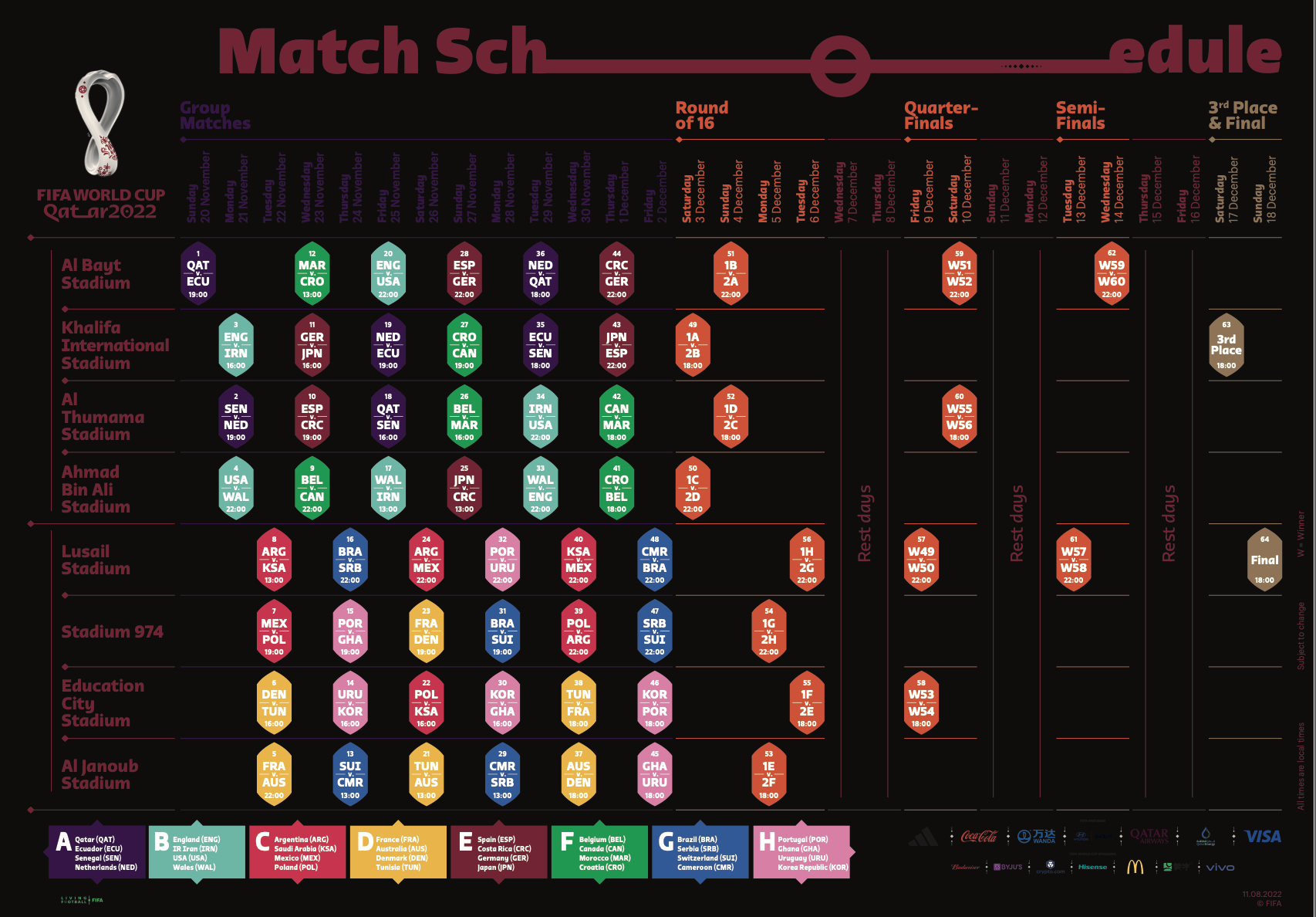 - Nov 22: Denmark vs. Tunisia at 8 a.m. ET/5 a.m. PT