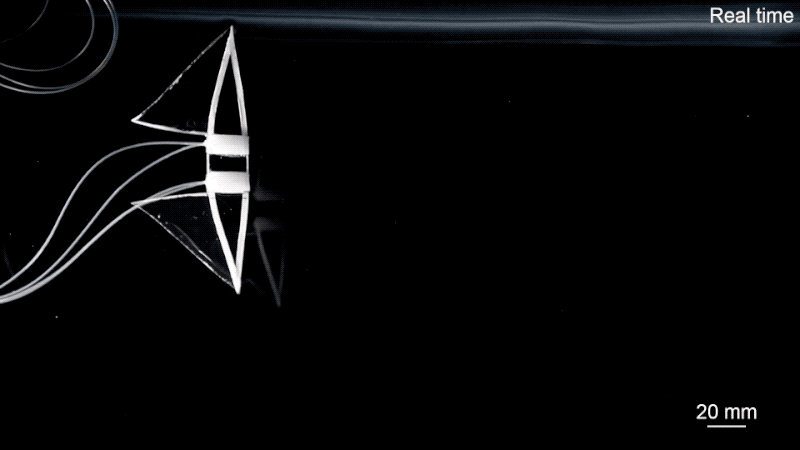 As to the issue of slow swimming soft robots, a team at North Carolina State University has developed a clever manta ray–inspired design capable of moving up to 3.74 body lengths per second. That marks a sizable increase over other systems that have difficulty moving one body length in that time.