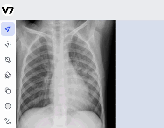 V7 describes the process as “autopilot” but co-pilot might be more accurate: The idea is that anything flagged as unclear is routed back to humans to evaluate and review. It doesn’t so much replace those humans as makes it easier for them to get through workloads more efficiently. (It can also work better than the humans at times, so the two used in tandem could be helpful to double check each other’s work.) Below is an example of how the image training is working on a scan to detect pneumonia.