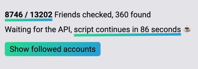 The developer says his tool works by looking at the relevant fields on Twitter where users often share their Mastodon account information — like their bio, user name, location field, URL field or in their pinned tweet. It then used Regex to extract possible Mastodon handles and URLs. With the Mastodon API, it determines if the handle is actually a Mastodon account, or if it’s something else — like an email address. The tool also fetches a list of all your current friends on Mastodon to show you if you already follow each other or not.
