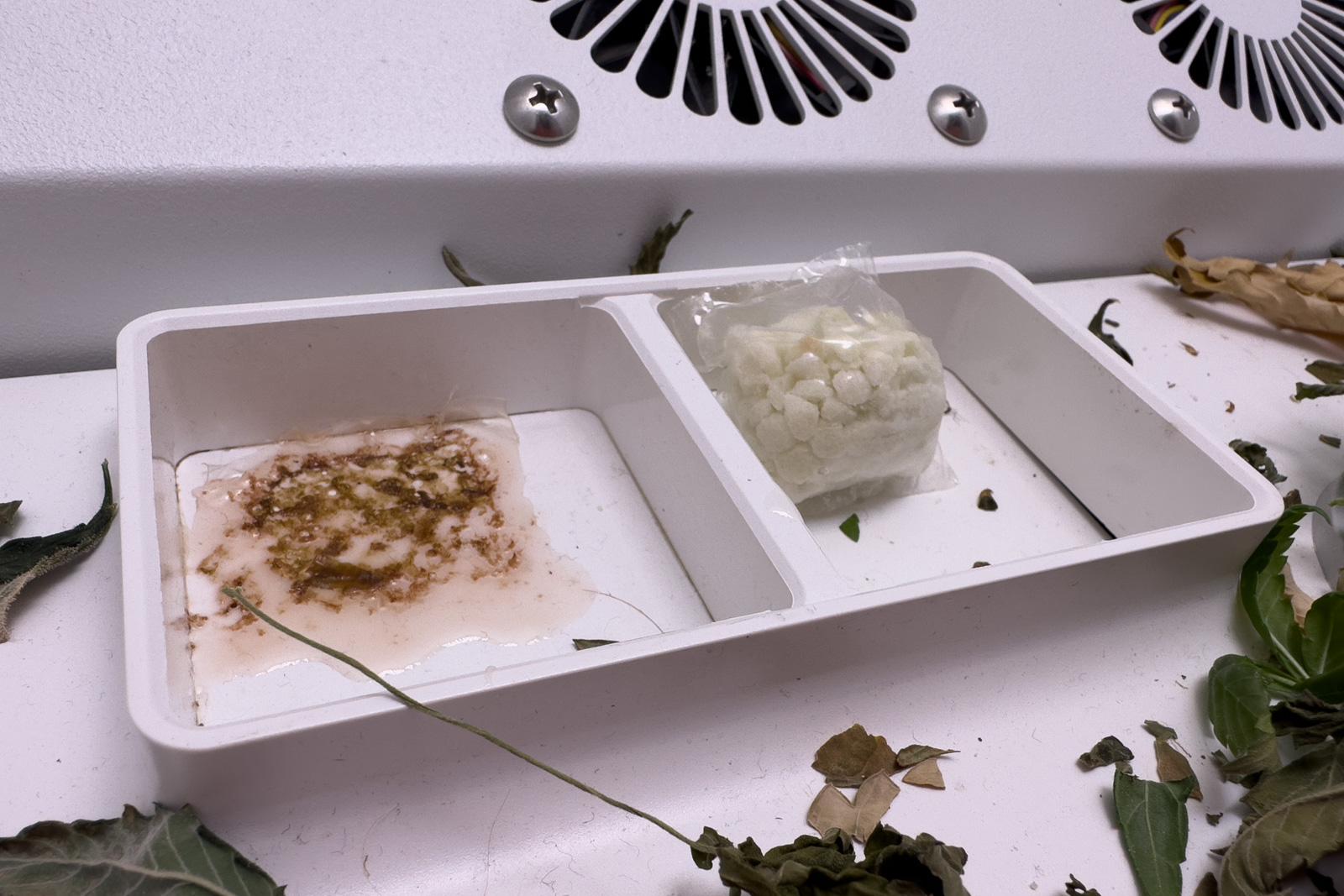 The box comes with a really clever nutrient system: It has two spots where you can place the “silver” and “gold’ nutrient packs. It does this because one of the packs needs to dissolve fully before the other one is added, to avoid a chemical reaction between the two packs. Unfortunately, this only worked the very first time I set up the machine: After that, it never asked for additional nutrition packs, so the packs I had so diligently placed in the supply holes eventually just dissolved in place, and made a sticky mess all over the machine: