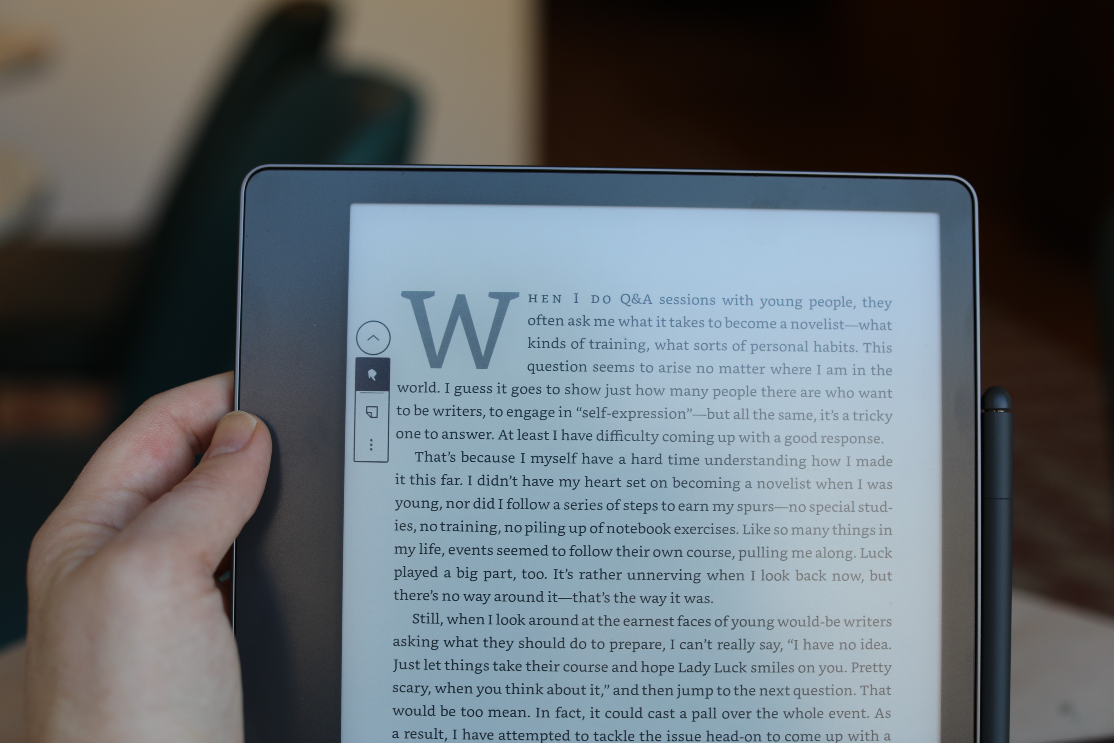 For reading text, however, you still can’t beat e-ink. It’s the easiest on the eyes and battery life. I quite enjoyed the larger page format, as well, though the device’s size means it’s a bit tough to read while lying down. Rather than holding it above my head, I found myself mostly reading on my side while in bed. If you’re purely looking for a casual reading device, again, the Scribe is overkill.