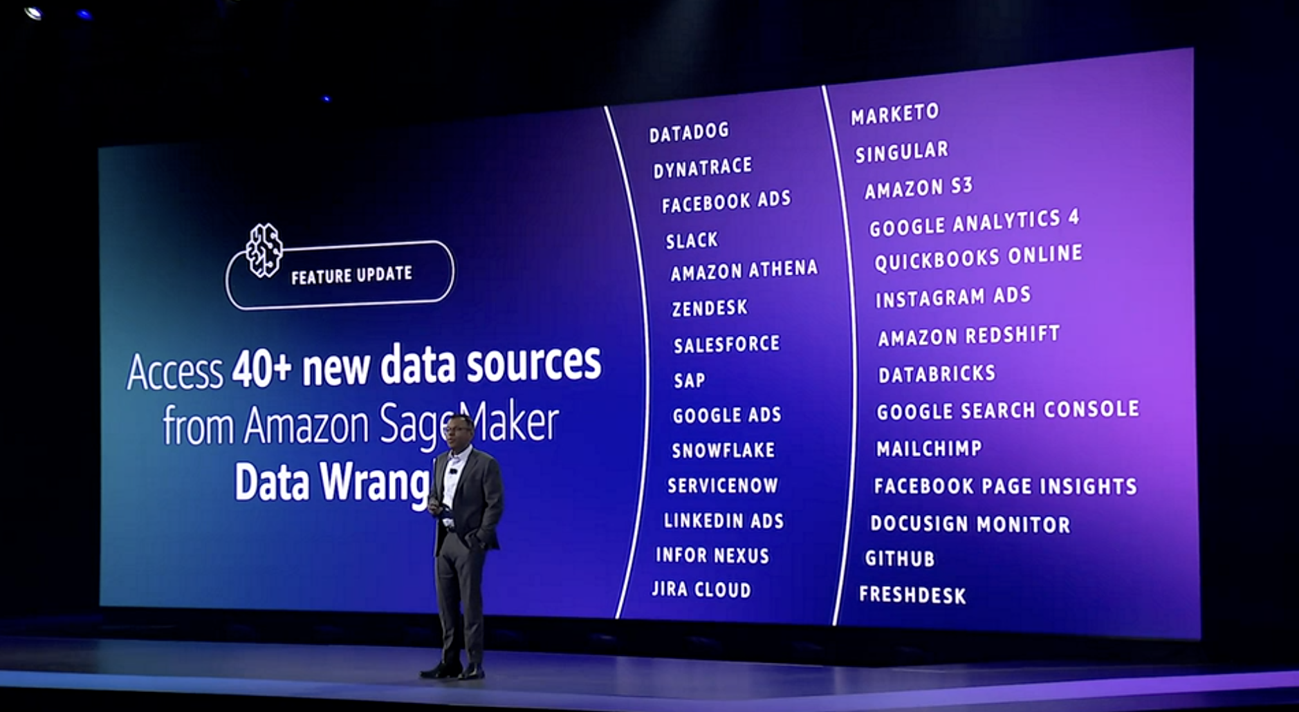 AWS today announced a lot of feature updates — and little else — during its re:Invent data and machine learning-focused keynote (though there wasn’t a lot of machine learning there). Nothing here rose to the level where we felt we should write a full story, so in the interest of time, here’s everything the company announced today in easily digestible screenshots.