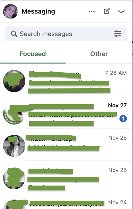 Today the company made a couple of announcements related to its direct messaging service — your private inbox that sits alongside your public feed — that speak to this theme: LinkedIn is rolling out a “focused” option for incoming messages with others relegated to an “other” box; and it’s turning on new automatic spam and harassment detection and a new feature to report unwanted messaging.