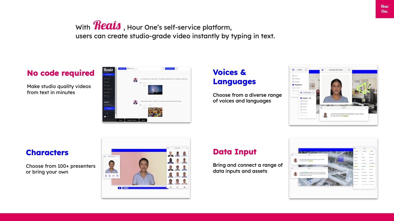 - Characters –> “Embrace diversity by choosing from more than 100 presenters.”