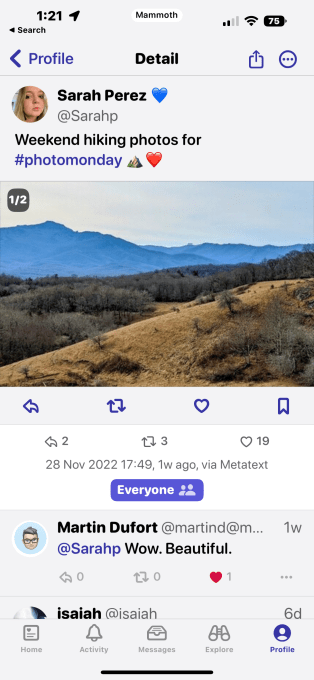 One of Ivory’s differentiators is that, unlike Twitter, it won’t show metrics like the number of boosts (Mastodon’s retweets), or the number of favorites or comments a post received in timeline view — a design choice intended to reduce screen clutter (and perhaps, clout-chasing).