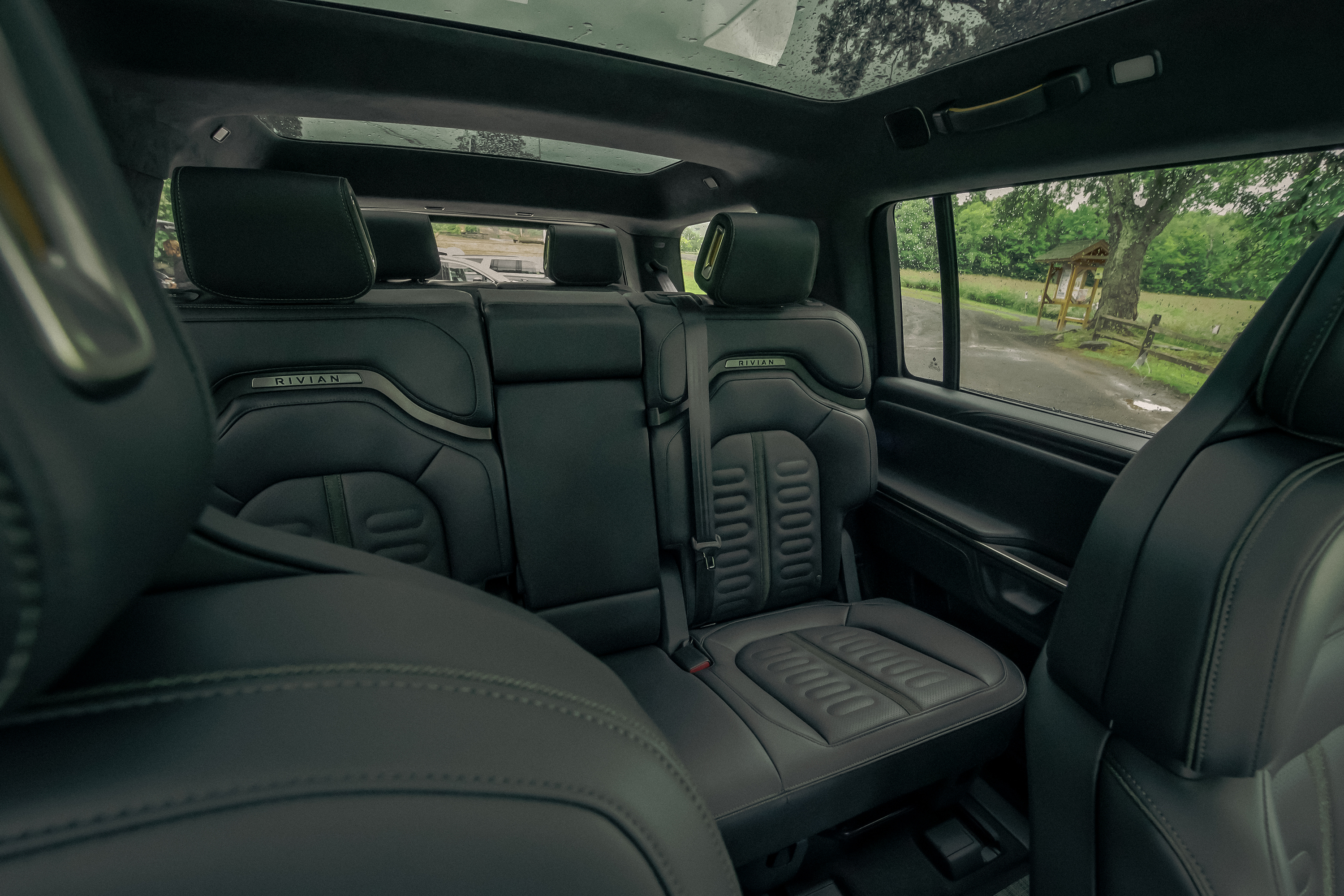 I also really liked the massive twin glass roofs that stretch from front to back of the R1S, at least for camping. Being able to look up and gaze at the moon or watch the stars from the comfort of a climate-controlled space makes camping in the desert that much more pleasant. Plus, if there’s another massive sandstorm, there’s no risk of getting sandblasted at 3 am.