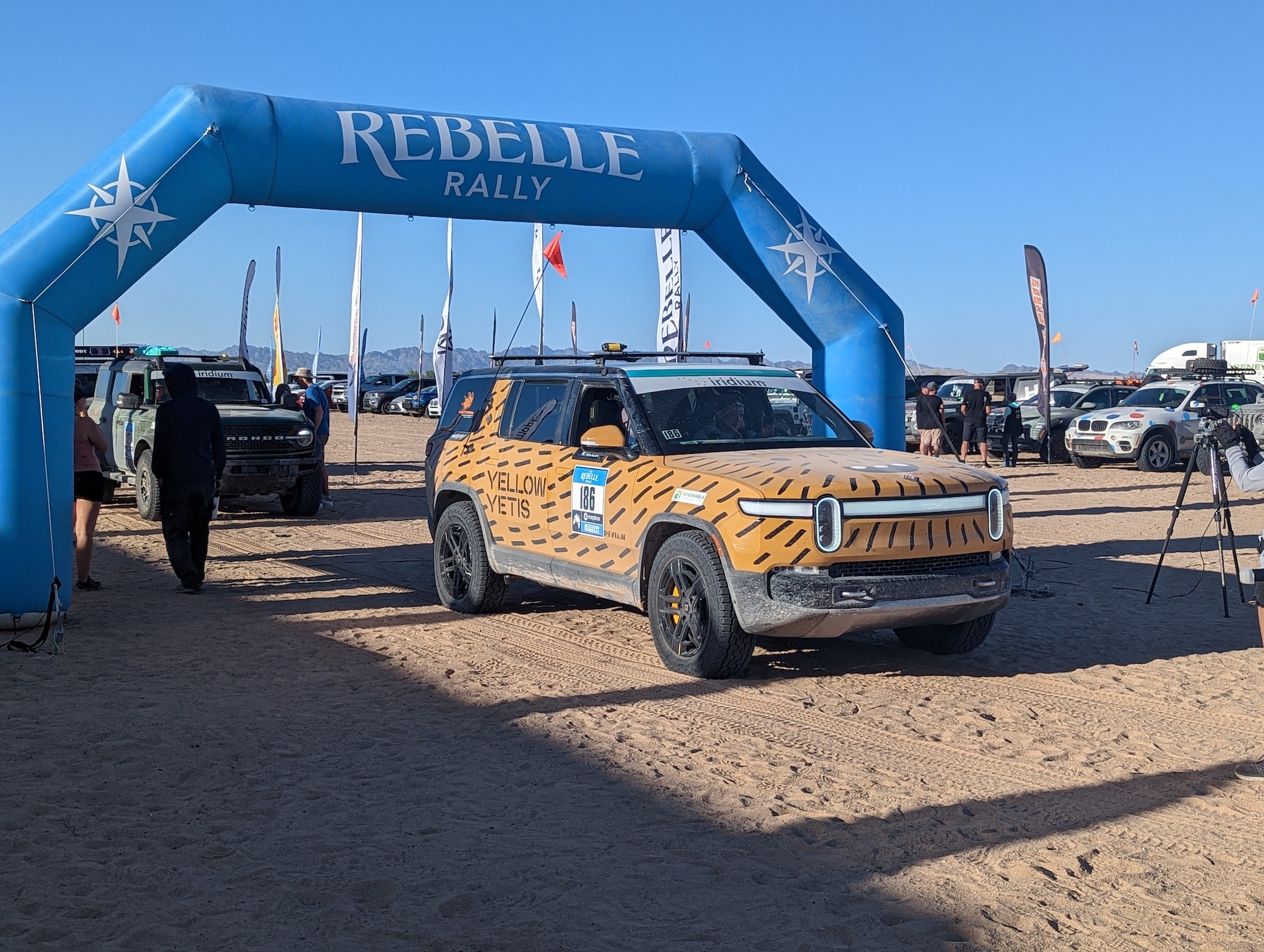 After a 250-plus mile drive from my home in Los Angeles in an attention-getting Forest Green Rivian R1S outfitted with blacked-out 20-inch wheels and specially designed all-terrain Pirelli Scorpion tires, I wasn’t really worried about the vehicle’s capability in the dunes of Glamis. After all, Rivian has been actively competing in the Rebelle Rally with development vehicles for the last three years and has used learnings from the teams and competitors to create things like Sand Mode to help owners (and Rebelles) deal with gnarly offroading situations.
