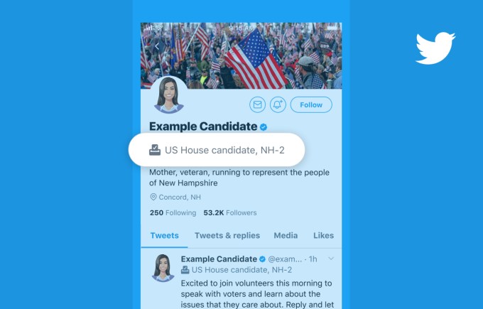 US election candidates: This label notes that the account belongs to a person who is participating in the U.S. midterms or running for House of Representatives, U.S. Senate or governor. The company has used these labels in multiple elections now.
