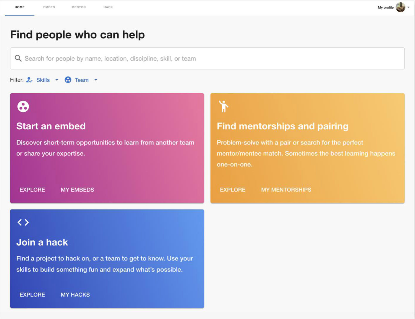 Skill Exchange, meanwhile, essentially brings an internal marketplace to help users find mentors, temporary collaborative learning opportunities or hacks to improve their engineering skills.