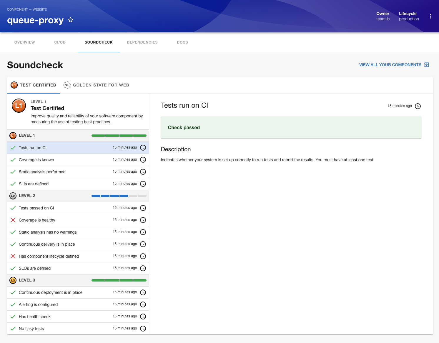 And then there’s Soundcheck, which helps engineering teams measure the health of their software components and “define development and operational standards.”