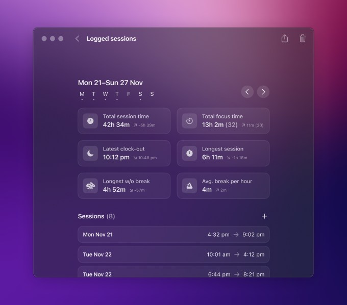 Sandberg said he’s building more pro features like a better session history overview with month and year; categorization and labeling of sessions; and app and website blocking to help users focus more.