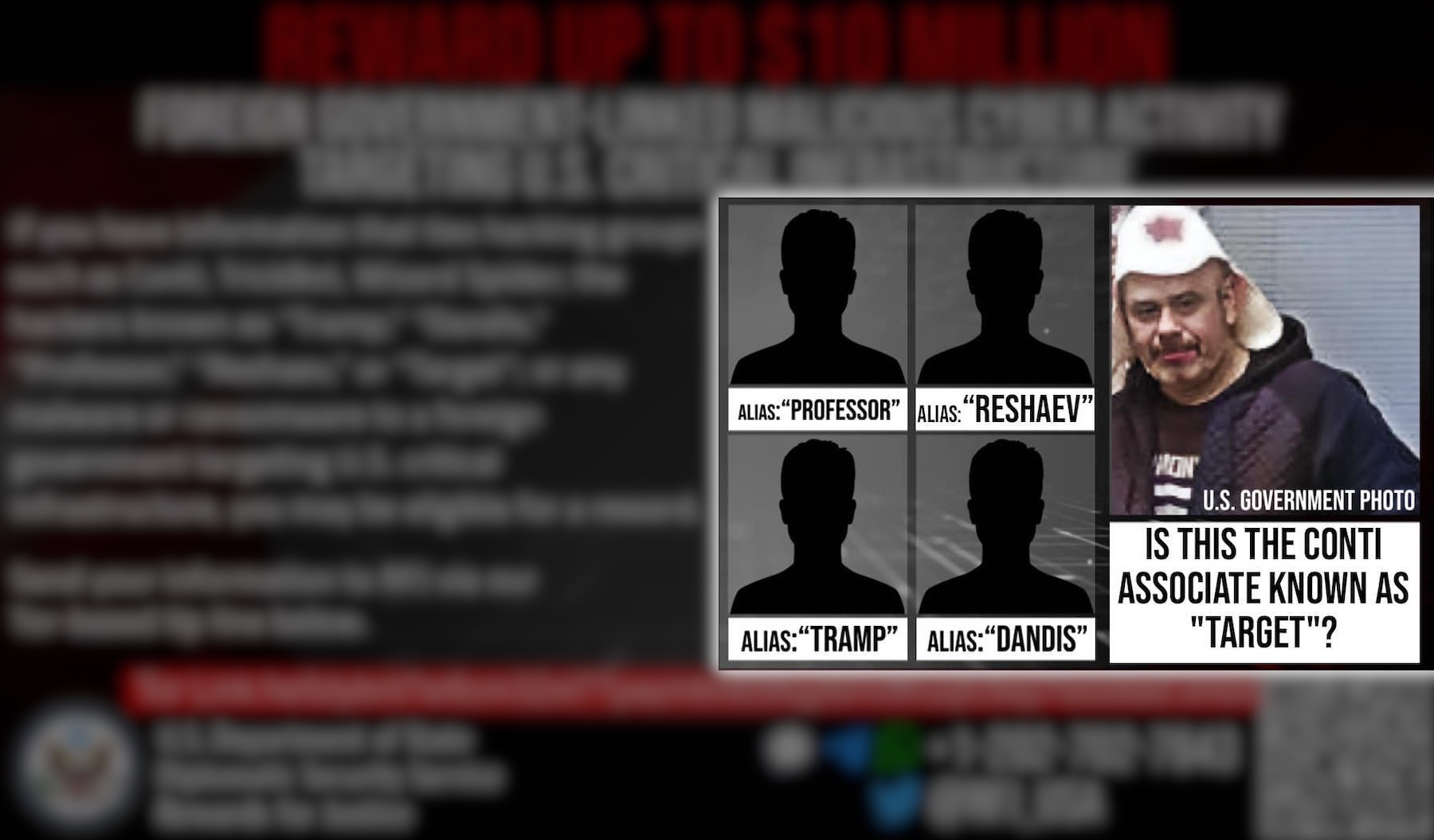 In August, the U.S government shared an image of a suspected Conti ransomware operator known as “Target,” the first time it has outed a major ransomware actor. The program also offered up to $10 million for information leading to the identification and location of Target, along with four other alleged Conti members known as “Tramp,” “Dandis,” “Professor” and “Reshaev.”