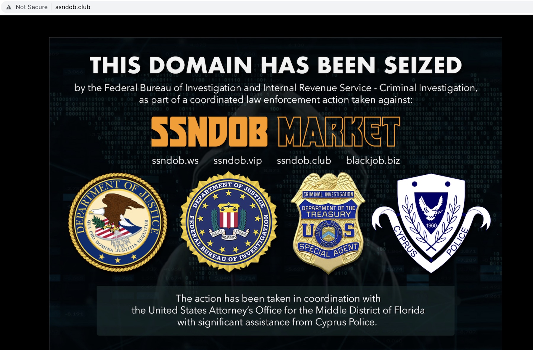 The landmark operation was carried out by the FBI, IRS and the DOJ, with help from the Cyprus Police, and saw authorities seize four domains hosting the SSNDOB marketplace.