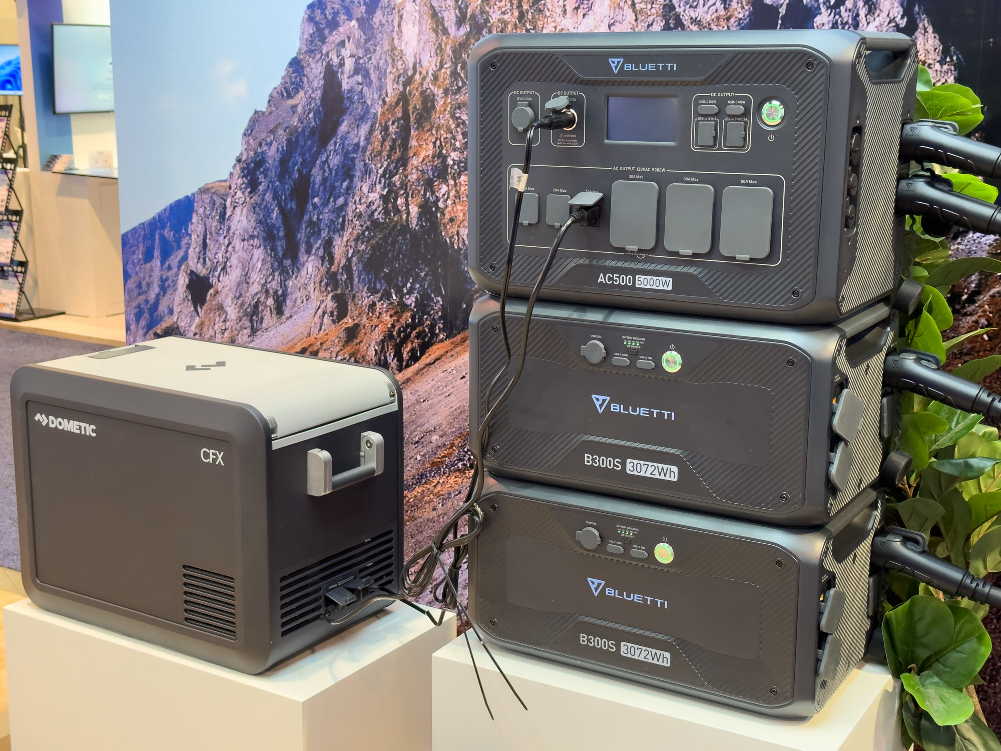 The biggest news from Bluetti was its full-house power in the form of the B300S and matching inverter series. In normal use, the mains power (or a solar array) keeps the batteries topped up. When the power goes out, the battery packs jump in, like an uninterruptible power supply for your whole house. You can either keep power to everything, or design two separate circuits; one with essential power circuits (your fridge, cooking and heating/cooling, for example), and one with less essential circuits (say, your washing machine and EV).