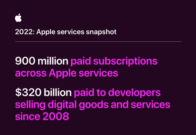 Apple today shared an update on its subscription businesses and global App Store, noting that the tech company has now paid out a record $320 billion to app developers since 2008 — a number that reflects the revenue apps have generated, minus Apple’s commission. In addition, the tech giant said it now has more than 900 million paid subscriptions across Apple services, with subscriptions on the App Store driving a “significant” part of that figure.
