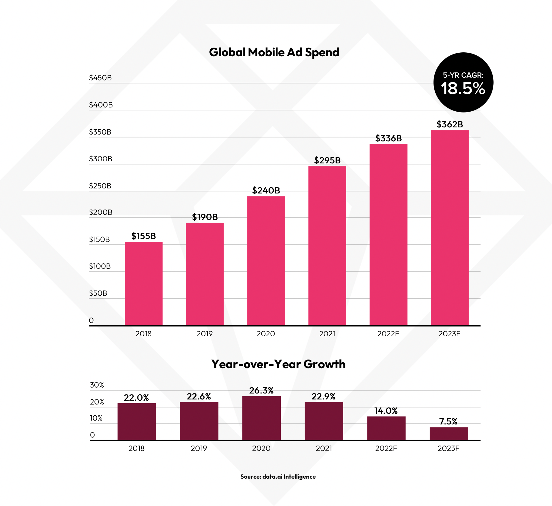Mobile ad spending also grew 14% year-over-year to reach $336 billion in 2022, though data.ai warns this growth will slow in the face of economic headwinds. Short-form video apps, like TikTok and YouTube, are expected to drive much of this ad spend as social networking platforms decline.
