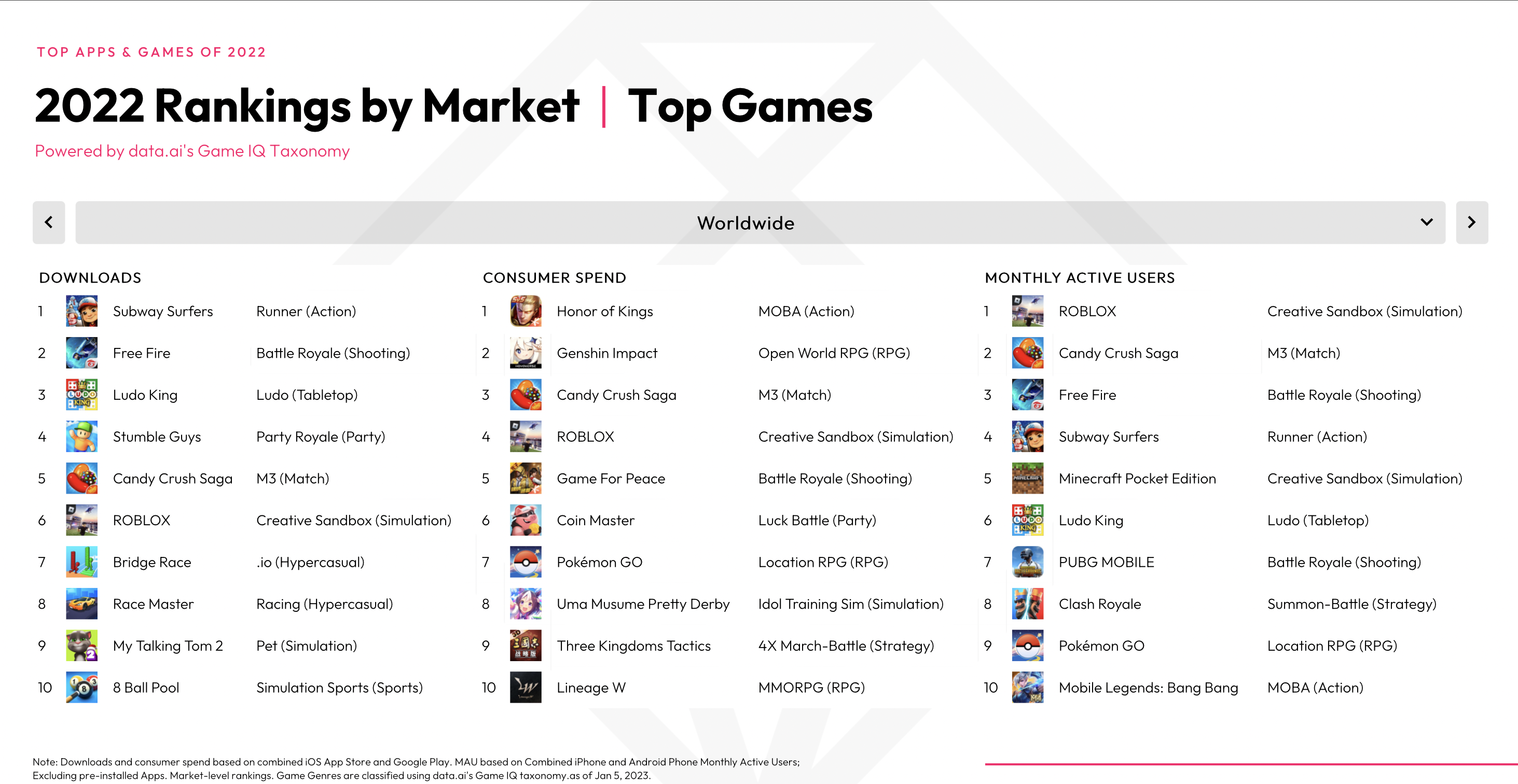 In total, 1,419 apps and games topped $10 million annually in 2022, 224 topped $100 million and just 10 topped $1 billion.
