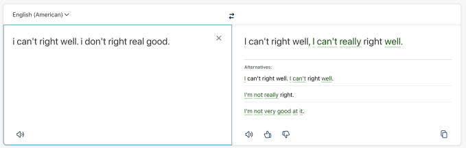 The “AI writing companion,” as Kutylowski describes it, is aimed both at native speakers but perhaps even more at people who write passably if slightly awkwardly in a second language and are hoping to give their words that extra native shine. “The idea is we could help a student improve a grade by one,” in a manner of speaking, he added.