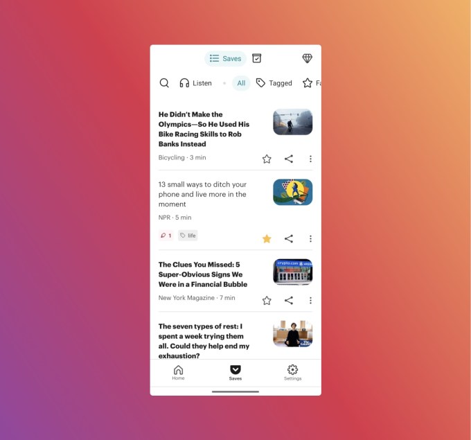 Pocket, a popular read-it-later app acquired by Mozilla in 2017, is rolling out two major changes to its mobile reading experience, as it faces new competition from startups like Matter and open source alternatives like Omnivore. The company today is revamping key features, including its Home tab and its “My List” tab, which is now being rebranded as “Saves.”