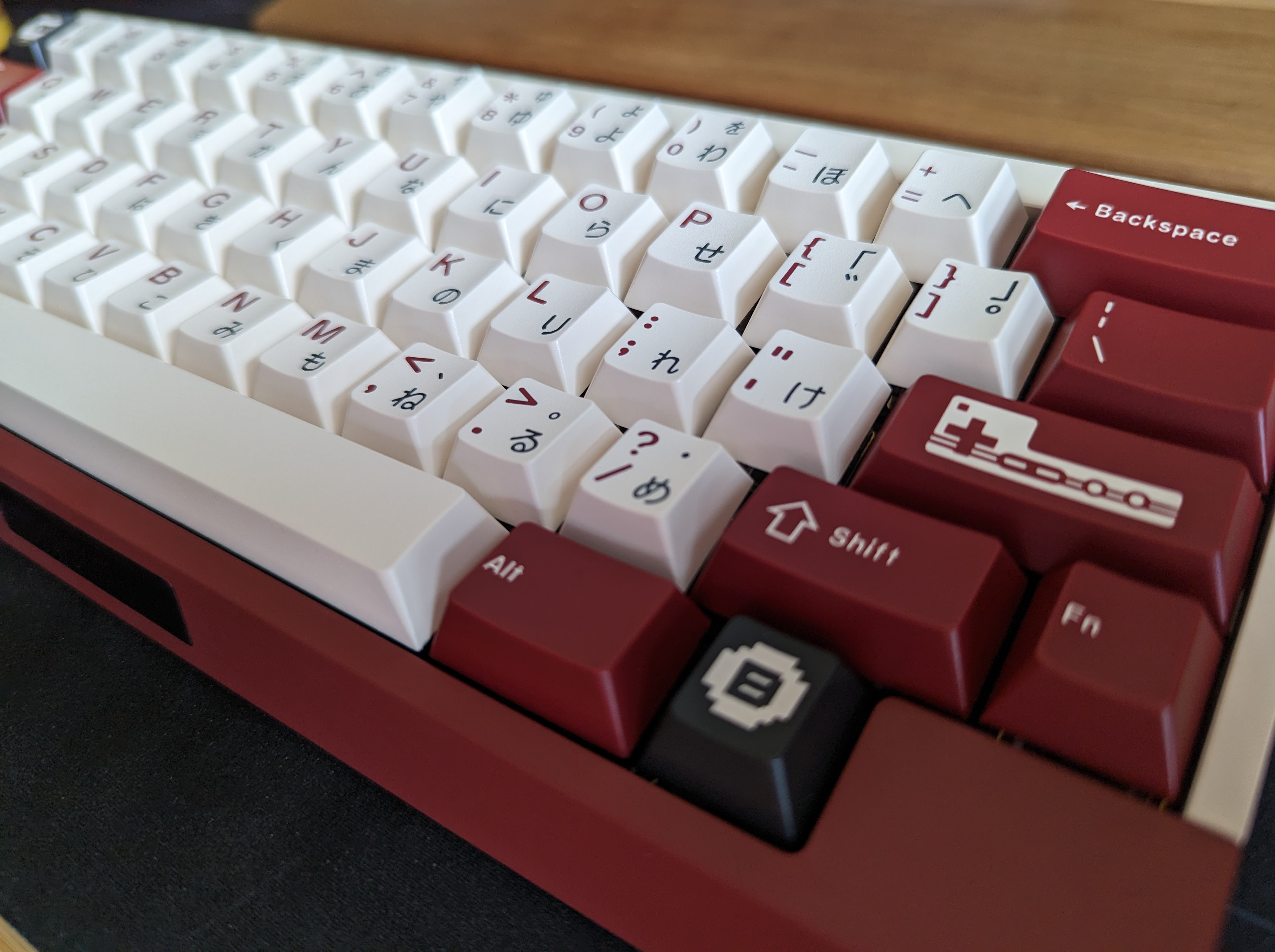 We’re also talking about some thick, high-quality keycaps — at least on the 8-bit version I tested. For this version, the company is using the Cherry-profile JTK Classic FC keycaps, inspired by the Nintendo Famicom of the 80s, which, best I can tell, were first available in a group buy in 2020 and now available in stock at a number of vendors. These are triple-shot ABS keycaps with Latin and hiragana legends that feature a mix of the original base kit and its novelties. Other variants feature keycaps the company created in collaboration with the likes of Domikey and others.