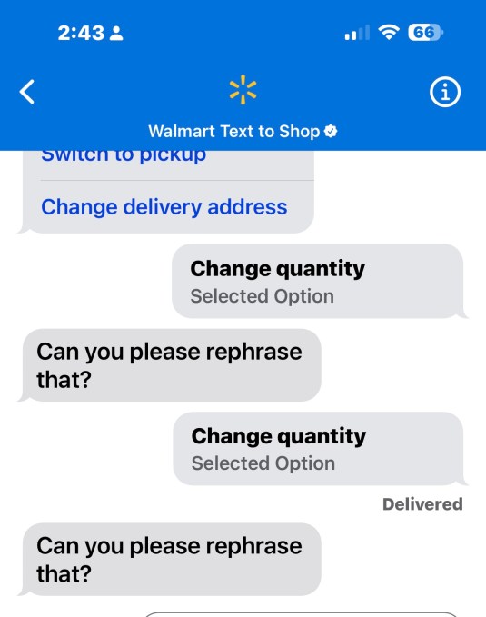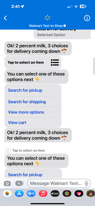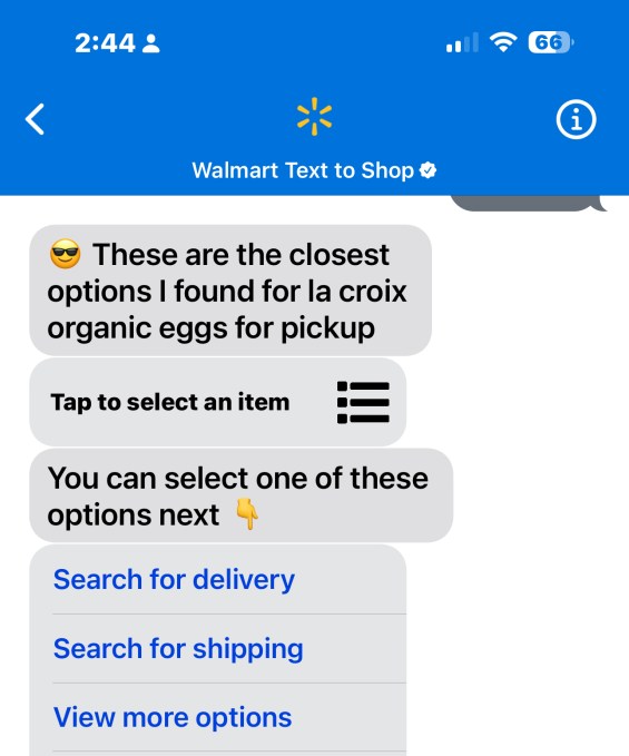 Walmart recently introduced a new way to shop: via text. Last month, the retail giant launched its “Text to Shop” experience which allows mobile consumers across both iOS and Android devices to text Walmart the items they want to purchase from either their local stores or Walmart.com, or easily reorder items for pickup, delivery, or shipping. However, the chat experience as it stands today does not come across as fully baked, our tests found. The chatbot said confusing things and the user interface at times was difficult to navigate, despite aiming to be a simpler, text-based shopping experience.